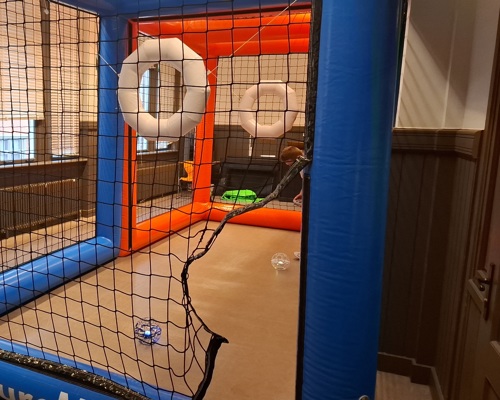 De workshop vond plaats in lokaal 1.3, waar een grote opblaasbare kooi was opgebouwd. Binnen deze kooi speelden de leerlingen drone voetbal in teams van 3 tegen 3. Met veel enthousiasme en fanatisme vlogen de drones door de lucht in een poging om te scoren. Het zorgde voor veel plezier én teamwork.